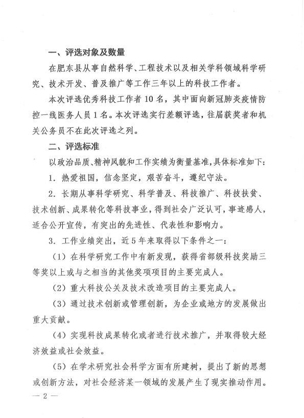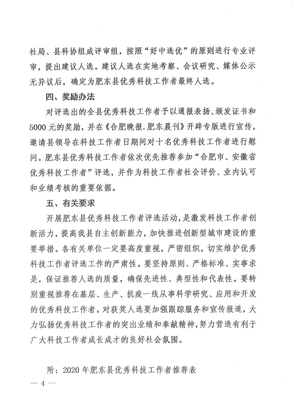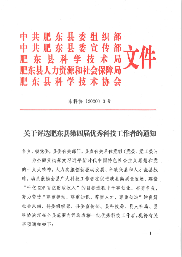 关于评选肥东县第四届优秀科技工作者的通知