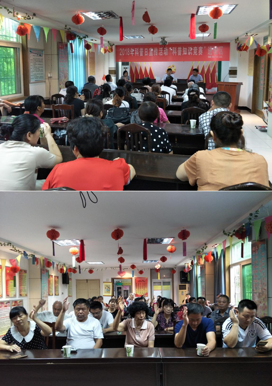 本次竞赛题型内容丰富,包括食品安全、心理健康、安全常识、家庭教育等科普问题,活动采用举手抢答的形式进行比赛。在活动现场,主持人每报一个题目后,参会人员都开动脑筋,争先恐后地举手抢着回答问题,现场一片欢声笑语,整个活动充满了活力快乐,大家在愉快的氛围中学习科普知识,让科普知识牢记于心。