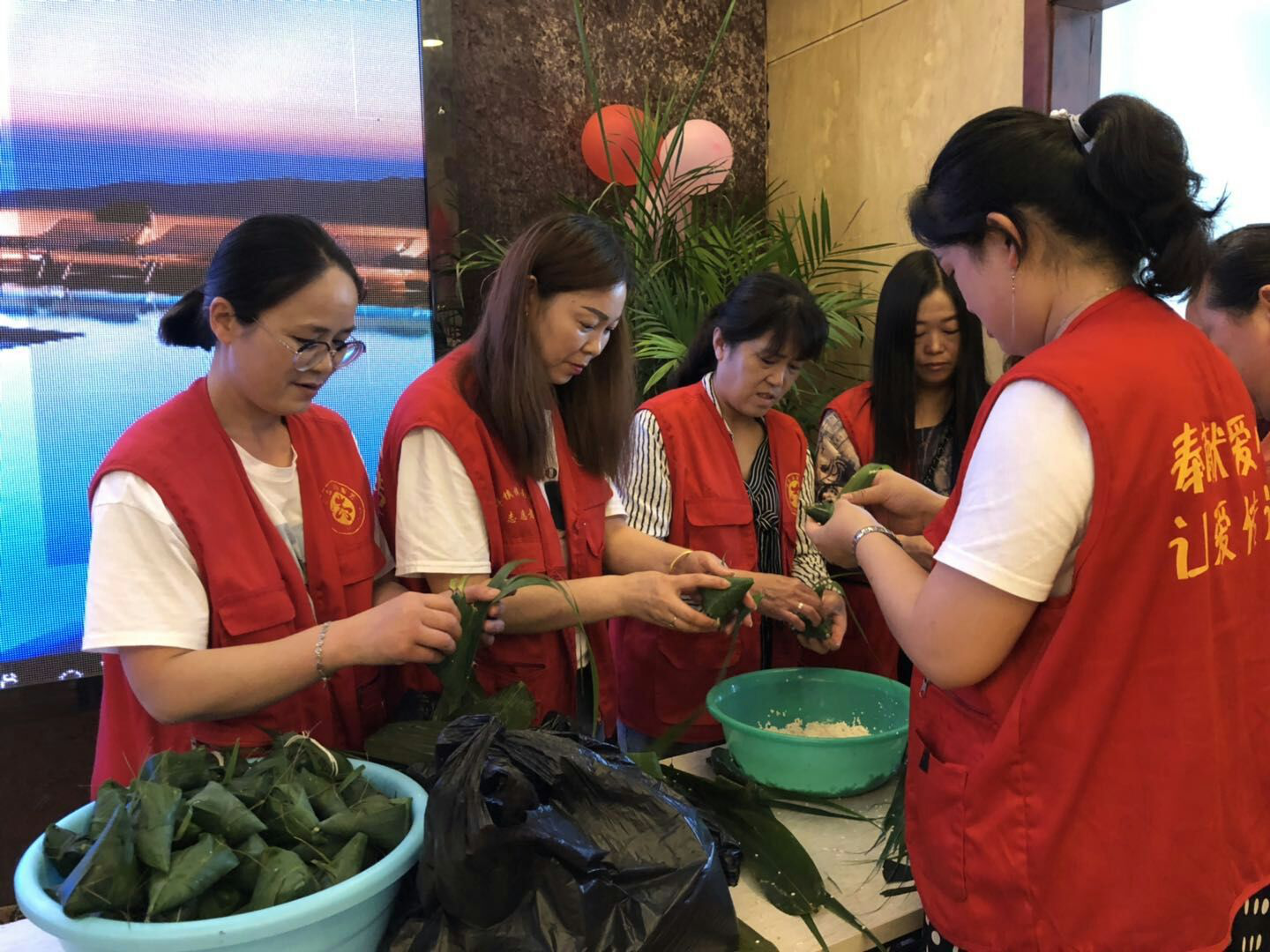 活动开始前,大家准备了充足的粽叶、糯米、红豆、腌制的猪肉等材料。活动现场,参加活动的职工围着方桌,三五成群,一面学、一面包,有虚心学习的新手,有耐心指导的高手。有北方的红豆三角粽,有南方的鲜肉锥子棕,还有四角棕,五花八门、形状各异。有用绳子捆扎的,有“穿针引线”用粽叶直接扎起来的。大家交流学习,互相谈论,“折粽叶、放糯米、红豆、鲜肉,系绳子”,两个多小时,近百个粽子便呈现在大家面前。