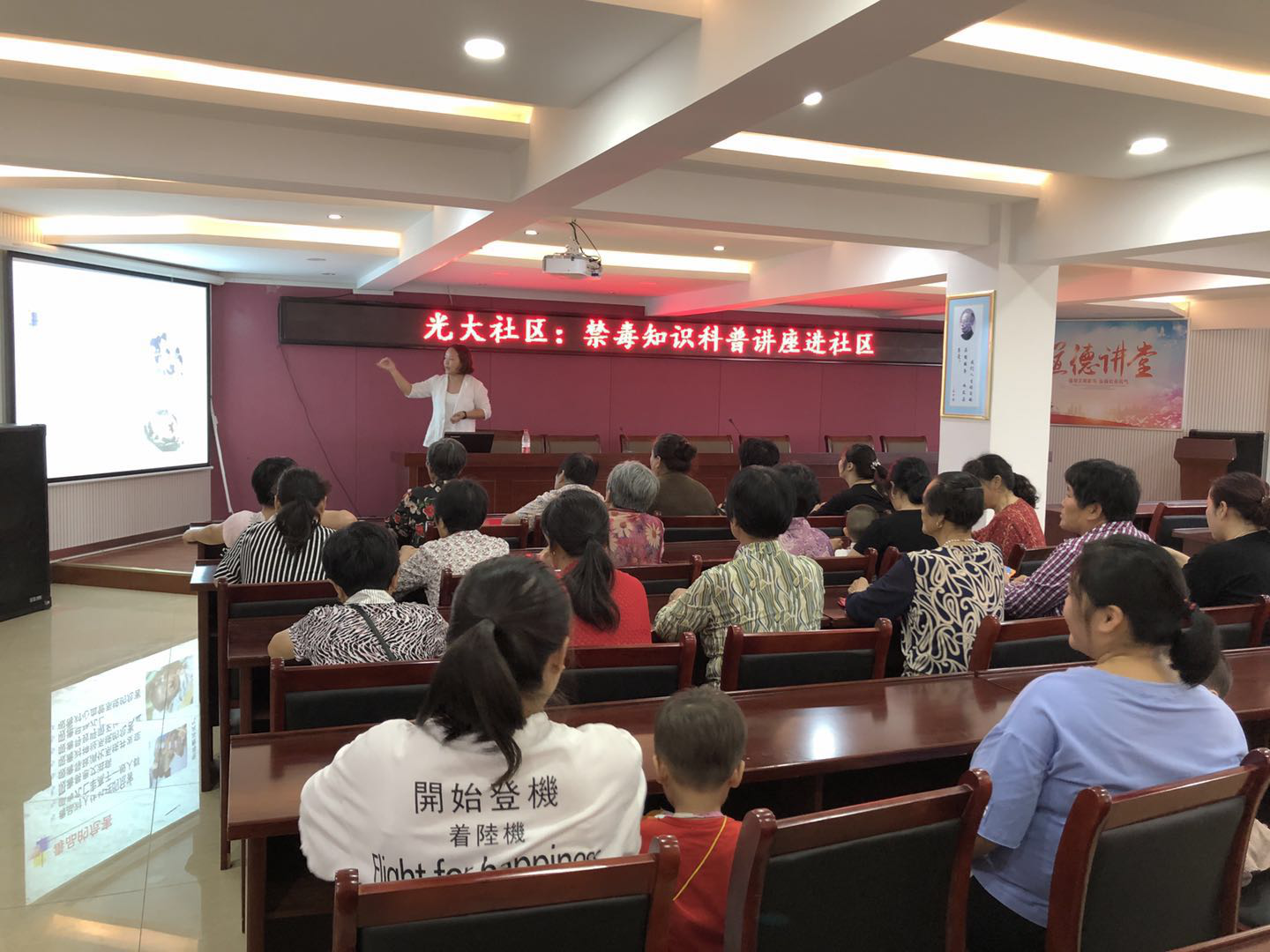 讲座中,社区邀请科普志愿者老师以警示片的形式详细介绍了什么是毒品,毒品对个人、家庭和社会的危害,毒品的预防方法,诱导人们吸食毒品的根本原因,以及该如何履行禁毒的义务,帮助人们远离毒品等方面知识。