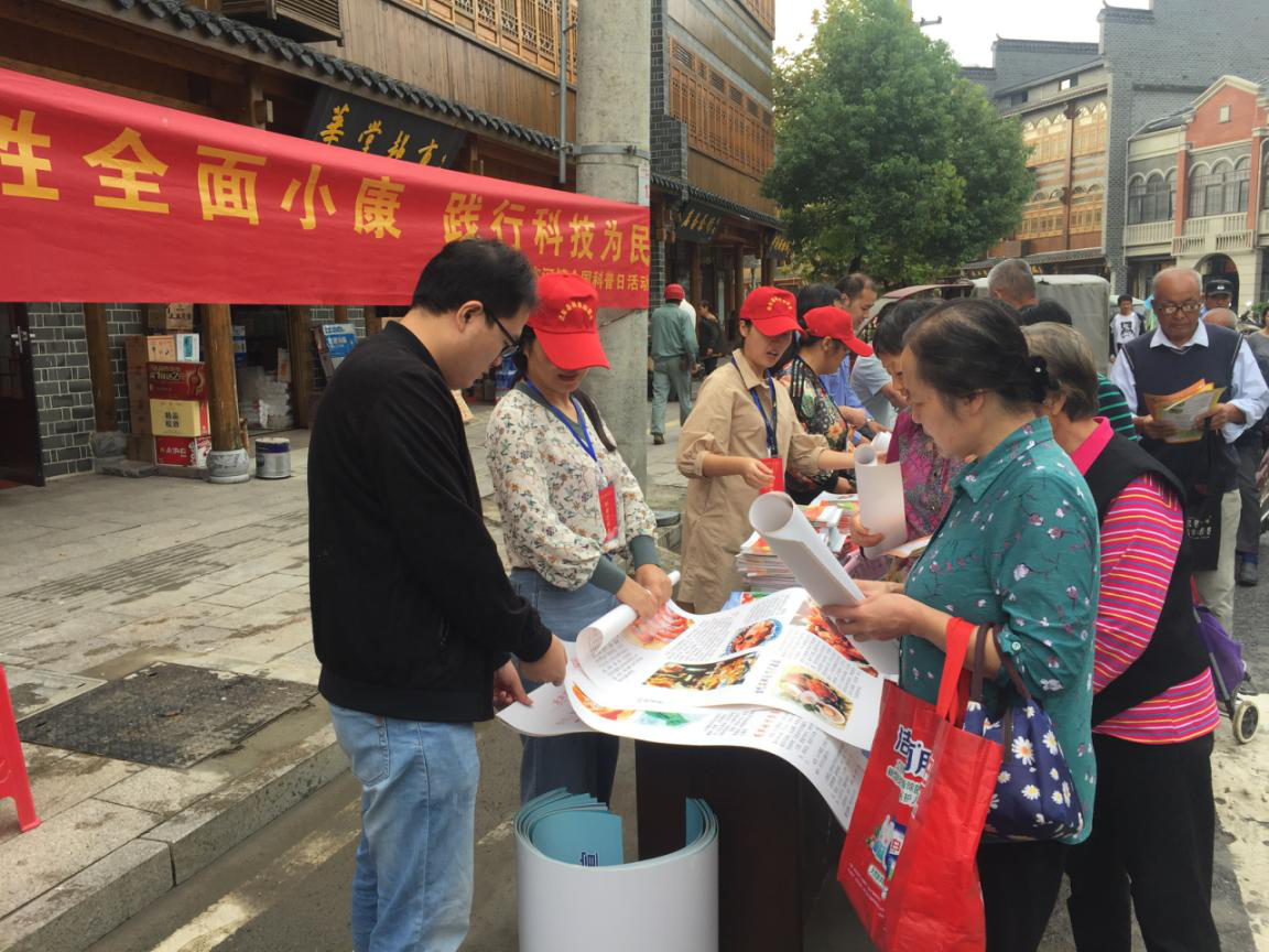 9月18日上午,长临河镇科协联合长临河苗木协会、食安办、市场监督管理局等部门在长临河镇大街共同开展以“决胜全面小康、践行科技为民”为主题的全国科普日宣传活动。