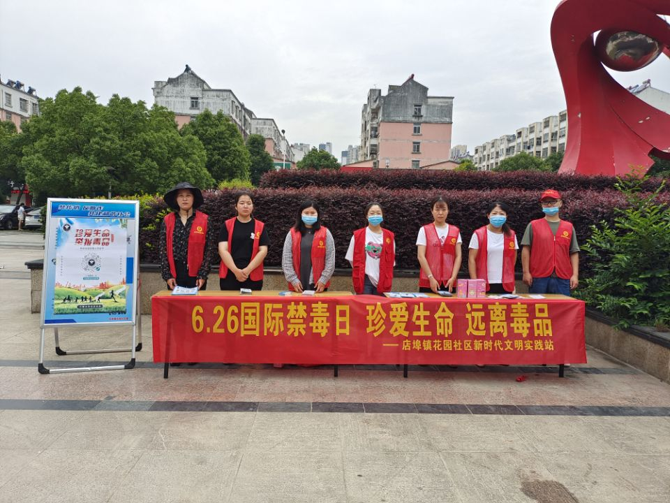 在“6.26”国际禁毒日到来之际,6月25日上午,店埠镇花园社区新时代文明实践站在御景花园文化广场开展以“珍爱生命 远离毒品”为主题的禁毒宣传活动。