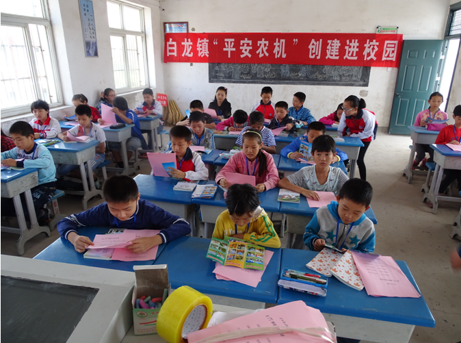 活动现场,镇科协志愿者们向同学们发放了《致全县学生及家长的一封信》、《农机安全知识》等宣传资料,就小学生安全出行、农机安全操作知识等与同学们进行互动交流,耐心解答学生们提出的关于交通安全知识问题。活动目的:在 “三夏”农机作业季节到来之时,避免和预防学生在上放学和放假期间走亲访友时,乘坐、扒乘拖拉机(变型拖拉机)等农用运输车辆,而应引发的农机事故,同时提醒家长在操作农业机械时,一定要自觉遵守交通法规,遵守农业机械安全操作规程。希望同学们要借助开展“平安农机”进校园安全活动,积极做好“平安农机”创建活动和道路交通安全宣传的小宣传员,以得到小手牵大手,共创平安幸福家园的效果。