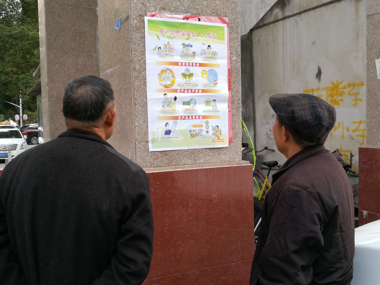 社区除通过宣传栏、电子屏、qq、微信群等方式进行宣传外,社区志愿者还走进辖区村民组张贴宣传画,向农民朋友宣传农业法律、法规、农业投入品、农产品质量安全和农业投入品辨假、识假知识,推广低度低残留、生物农药在农业生产中的应用,普及无公害农产品、绿色食品、有机食品知识,引导农民朋友科学使用种子、农药、化肥,进一步增强农民的自我防范和维权意识,提高农产品质量,确保粮食生产安全。(昂永翠 )
