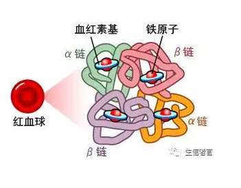 正常人的血红蛋白中的铁离子为二价,血液因之呈现红色。二价铁离子对氧有较强的吸引力,它在肺部与氧气结合形成三价铁离子,等到运送到需氧器官再与氧气分离又变回二价铁离子。