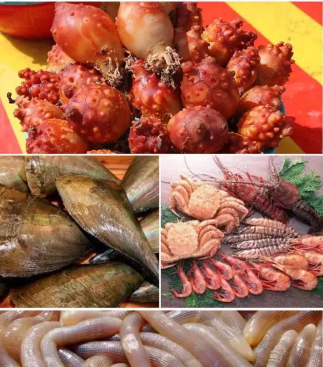 海鞘(上)/江珧(左)/虾蟹(右)/星虫(下)