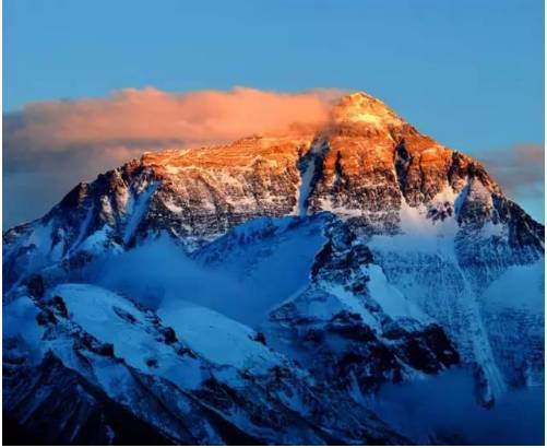 在珠穆朗玛峰上,会出现“旗云” 的景观,它还成为登山者判断天气好坏的标志。旗云是积云的一种——荚状高积云,是气流经过高耸的山峰时形成的一种地形云,当云被吹向峰顶一侧时,很像一面旗帜,因而得名。
