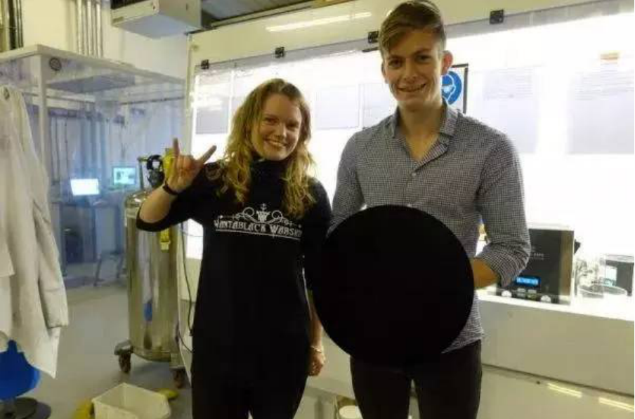 这个世上最黑的黑色,名叫Vantablack,由英国一家名叫Surrey NanoSystems的公司研发出来。维基百科上,把它翻译成“碳纳米管黑体”。Vantablack曾被这家公司在铝箔纸上进行培育。尽管这些铝箔纸可折成微型山川河谷,但在覆盖了这种物质的区域,这些地貌会消失。(啥也看不到,就是这么的神奇。。。)