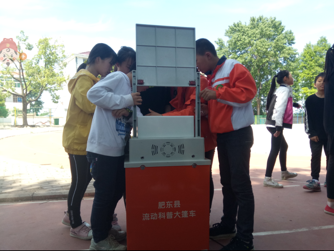 5月9—5月16日,由肥东县科协和县教体局联合举办的“流动科普大篷车”进校园活动分别对杨店、八斗、王城、富旺、赵亮、陈集、古城、杨塘、龙王等中心学校进行巡展,此次活动覆盖了80多个班级,3000多名学生,受到学生和老师的高度评价。当工作人员将件件科普仪器组装完成,就像组装完成了一个个知识宝库。同学们流连忘返,在机械构造演示仪、方形车、会跳舞的回形针、无弦琴等众多展品前流连驻足,感受了科学的奥秘。他们一边动手操作,一边动脑思考,上了一堂别开生面的科普课。