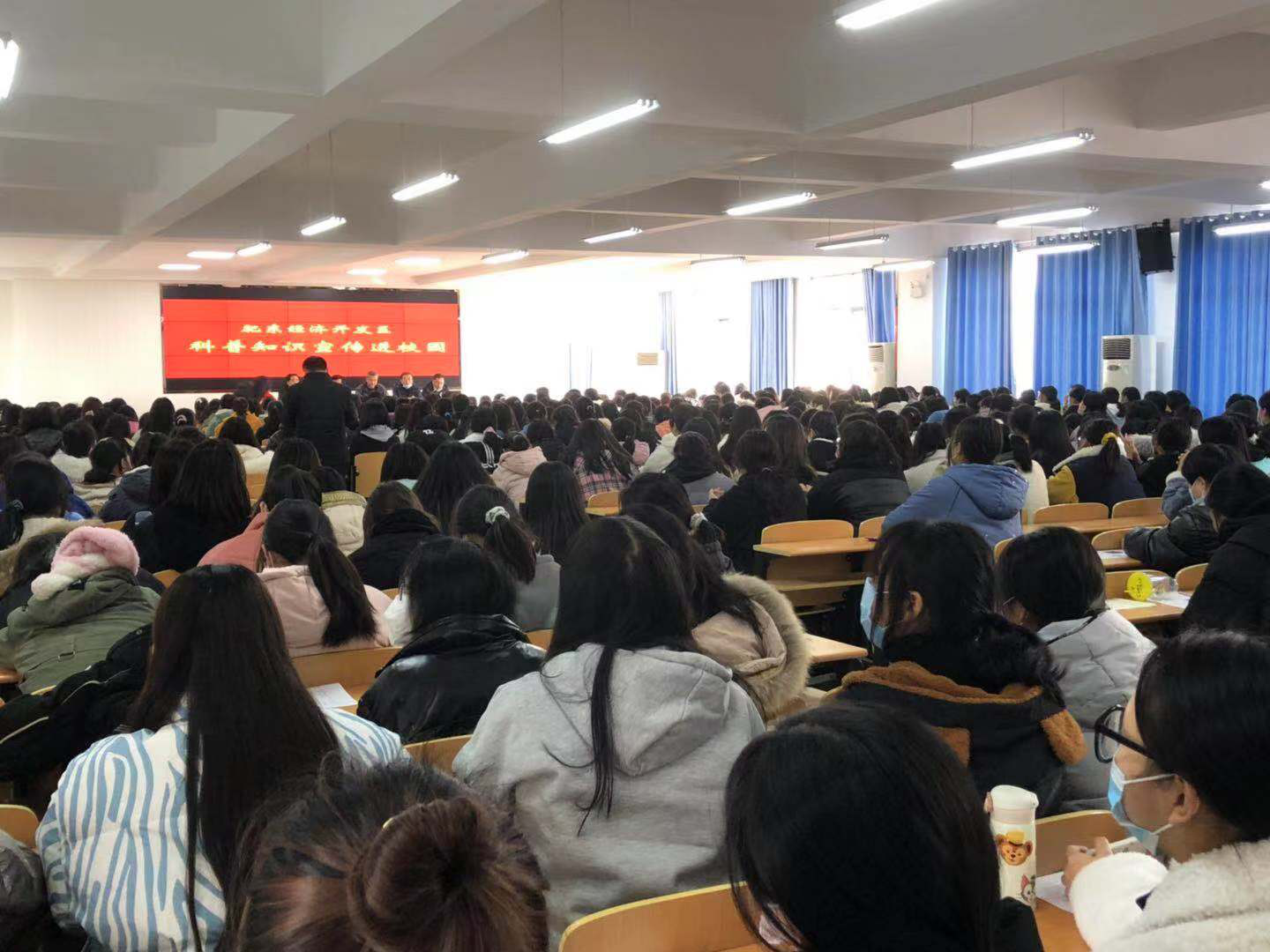 为了促进青少年健康全面发展,弘扬科学精神,普及科学知识,12月28日,肥东经开区科协与庐州卫生科技学校共同举办的“科普知识进校园宣讲活动”在庐州卫生学校举办。肥东县科学技术协会副主席郭世武,肥东县科学协会科普部部长黎邦达,经开区党工委委员、管委会副主任、经开区科协主席杜从容,肥东经开区经济发展局局长、经开区科协副主席张仁清,肥东经开区农村发展局局长、经开区科协副主席郭振华,庐州卫生科技学校师生约500人参加本次活动。