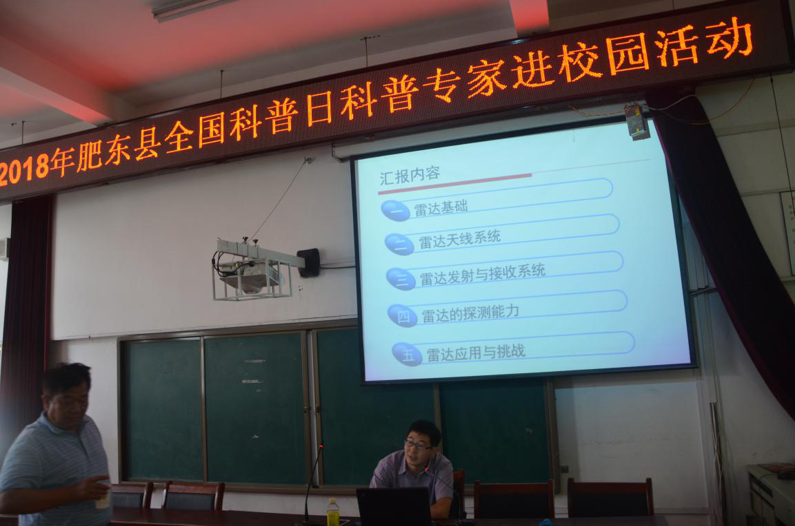 县科协邀请了中国科学技术大学计算机学院在读博士后,高级工程师,科普专家汪中来为经开区中心学校的学生开展了一次精彩的科普讲座。汪中专家对雷达基础、雷达天线系统、雷达发射与接受系统、雷达的探测能力及雷达的应用与挑战等方面的知识进行了深入浅出的讲解,讲解过程中还与学生近距离互动交流,不仅让学生学习到专业的雷达知识,而且让他们感受到浓郁的学术氛围。