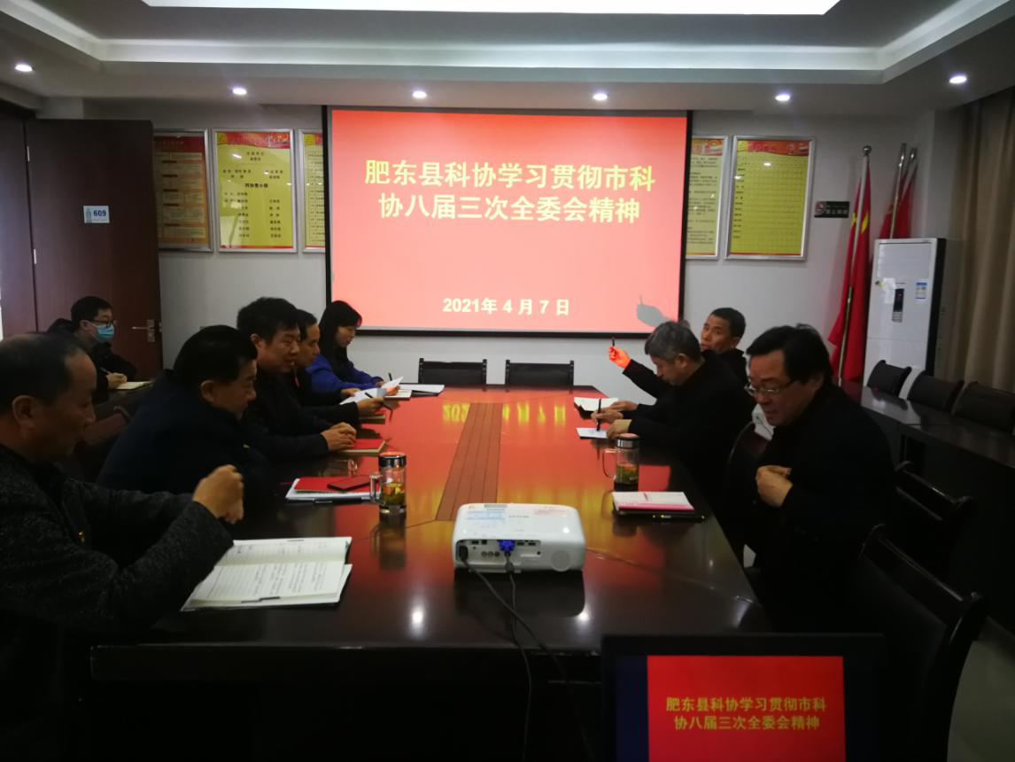 2021年4月7日,肥东县科协召开全体工作人员会议,会议传达合肥市科协八届三次全委会精神,回顾2020年工作,并对下一步工作重点进行安排部署。结合市科协八届三次全委会上的工作报告,进一步理清思路,明确工作目标,确保高质量、高标准完成本年度工作任务。