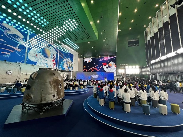 神舟十三号航天员翟志刚、王亚平、叶光富在中国空间站进行太空授课。本次活动采取天地互动方式进行,在中国科技馆(中国空间站科创体验基地)设置地面主课堂,在广西科技馆、四川省阿坝州汶川县第一小学、香港培侨书院、澳门科技馆分别设置4个分会场,共1420名中小学生代表参加课堂活动。