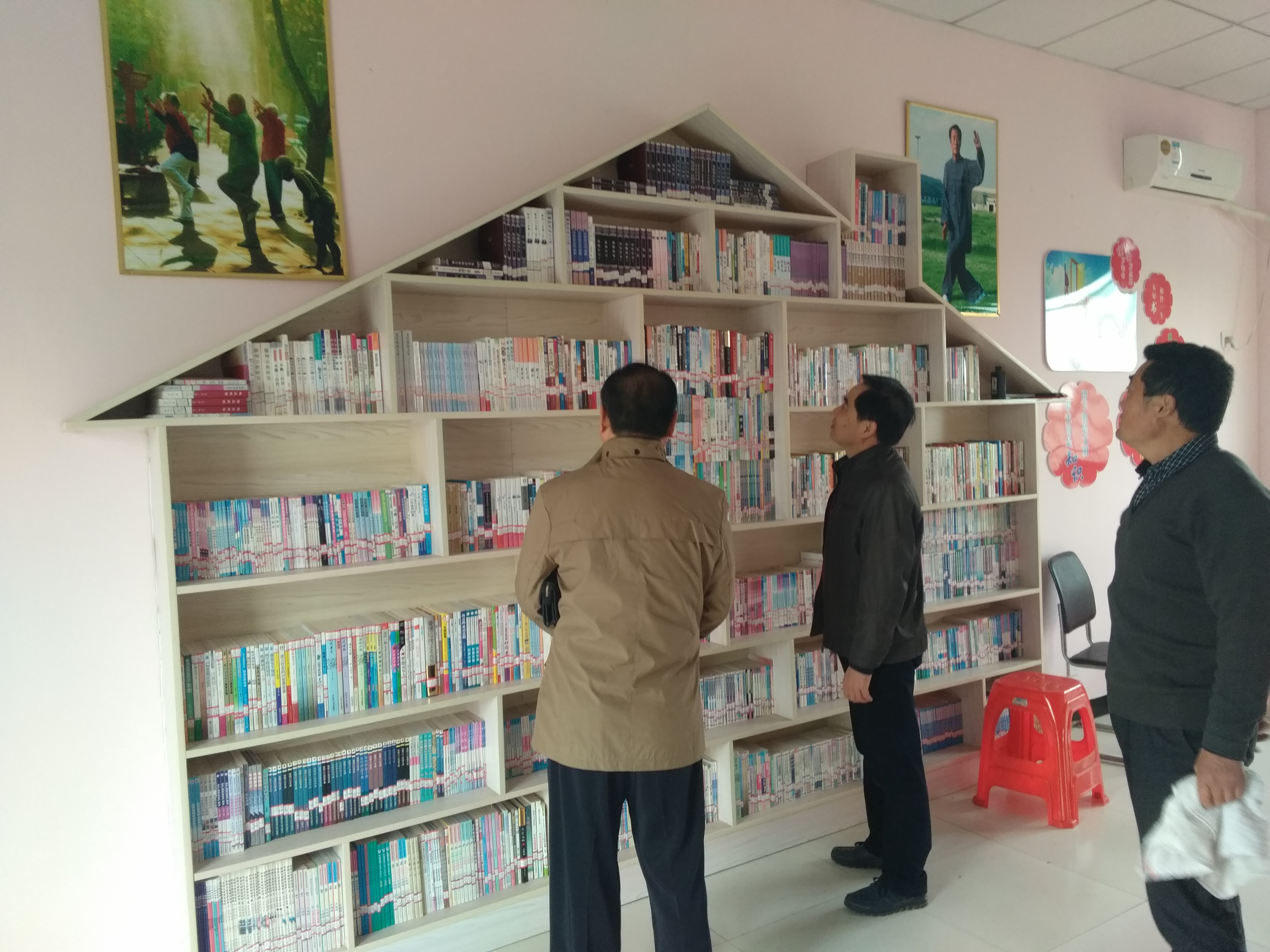 县科协人员察看八斗镇大张社区科普图书室