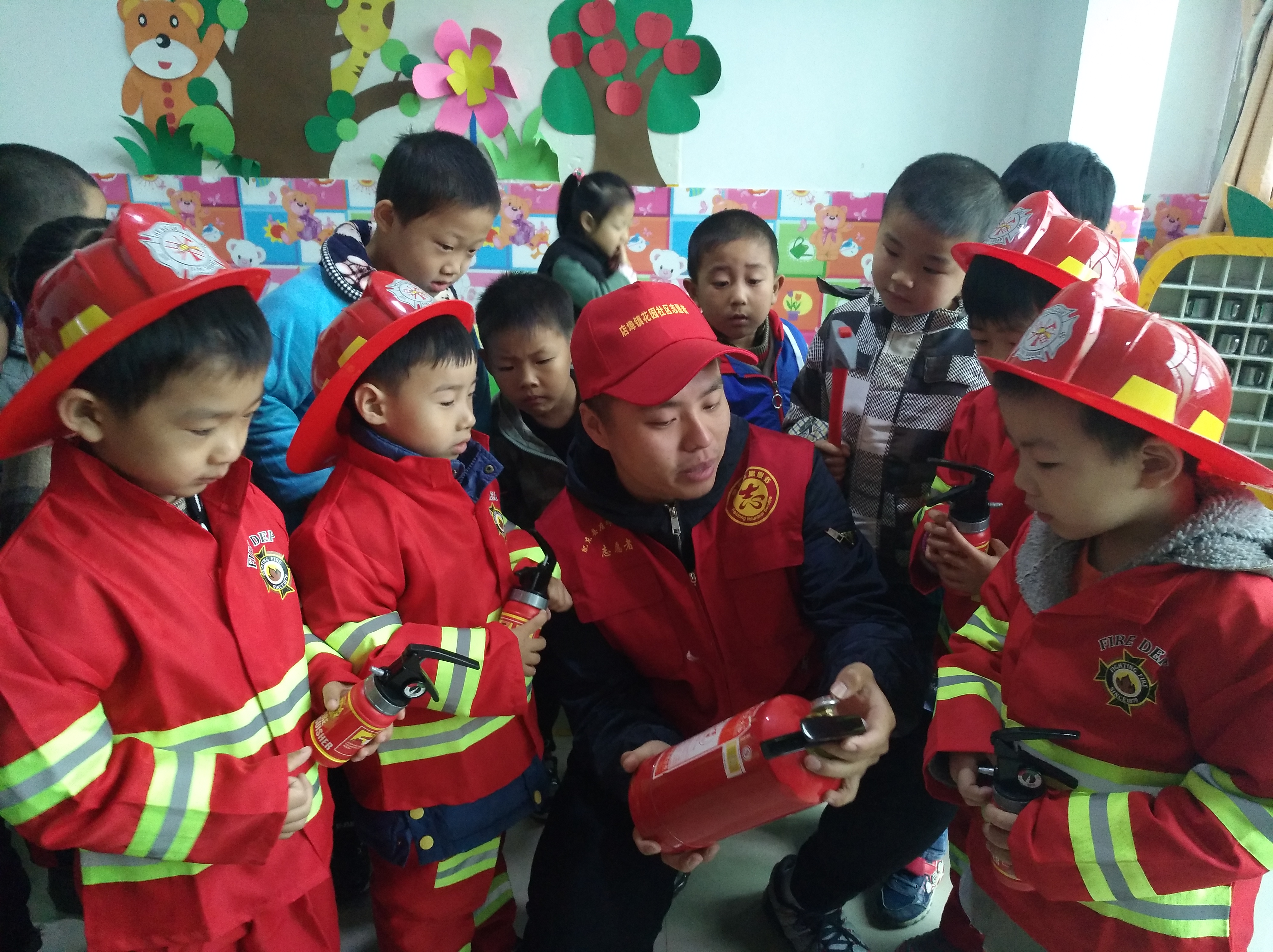“小朋友们,你们知道火警电话是什么吗?”“119”小朋友们异口同声地说。活动中,志愿者老师采取寓教于乐的互动方式,让小朋友在轻松愉快的气氛中掌握基本的消防常识,并示范了如何正确的报火警、如何使用灭火器、如何正确用湿毛巾捂住口鼻进行火场逃生。消防知识学习完毕后,4名小朋友穿上儿童版消防服,变身“小小消防员”,亲身体验了一次当消防员的风采。