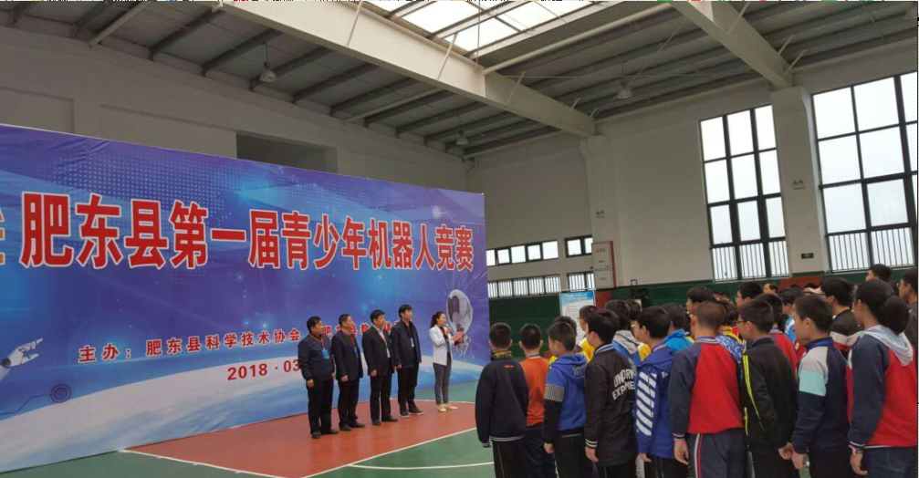 2018年3月31,风和日丽。肥东县首届青少年机器人竞赛在县第三中学篮球馆举行,本次比赛是由肥东县科学技术协会、肥东县教育体育局联合举办的。竞赛共有六个项目:机器人创意比赛、FLL机器人工程挑战赛、WER工程创新赛、机器人灭火、机器人足球、中鸣轨迹赛6个项目,共58支队伍100多名学生参加比赛。